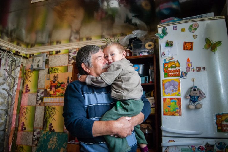 Маленький Максим прячется, капризничает, неохотно отвечает на вопросы и лезет к папе на руки. "Стесняется, - поясняет Владимир Владимирович, - не привык к незнакомым людям в доме. Целыми днями со мной дома да во дворе проводит". Максимка - не родной сын. Его и еще двоих малышей мужчина усыновил. Но ребенок крепко его обнимает и называет папой.