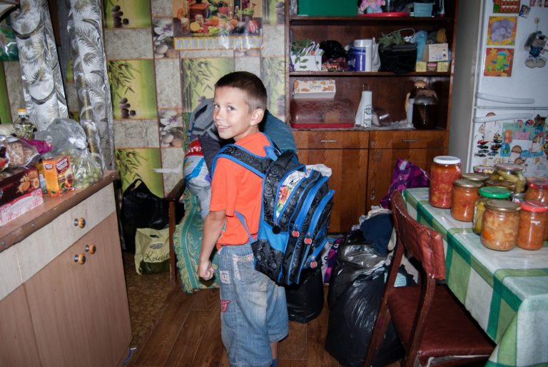 Пока Владимир Владимирович распаковывает продукты, со школы возвращается девятилетний Серёжа. Улыбчивый мальчик рад гостям, а от подаренного синего ранца приходит в восхищение. Уже завтра он пойдет в школу с модной обновкой!