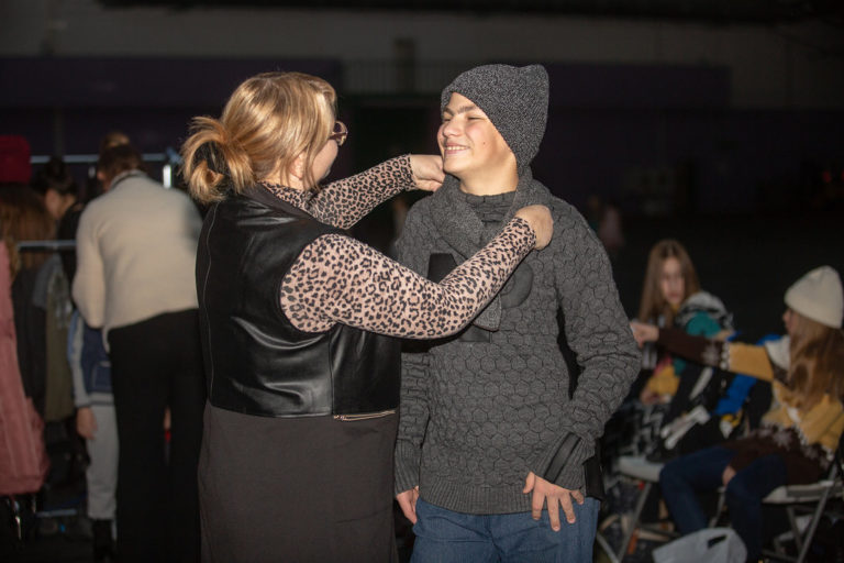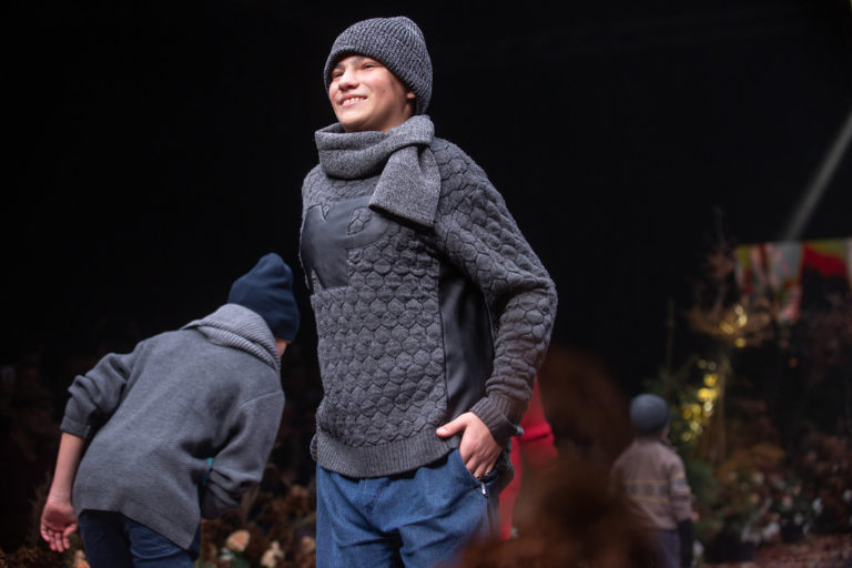 Перед показом организаторы озвучили, что демонстрация бренда «Полесье» - это инклюзивный показ, в котором принимает участие особенный парень Арсений. Вы бы только видели, как публика встречала нашего героя, как аплодировала Арсению. А он, восторженный и радостный, с удовольствием отвечал взаимностью.